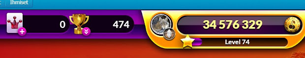 Hedelmäpelejä tulee pelailtua. Tunnustan että kerran olen ostanut 1,99 eurolla pisteitä. Peliin jossa voittaa pisteitä joita ei voi vaihtaa rahaksi. Kerran saa olla hmm.... jotain, eh;) Mutta tässä yksi ilta iski se älytön pistesaalis - 290 000 000 pistettä kerralla!! Kyllä oli hetken aikaa juhlava olo ja ihan samanlaiset sävärit kuin olisi voittanut kauhiasti hilloo!! Siis sen mikrosekunnin mutta kuitenkin!! Itseäni tämä ilahduttaa kovin sillä pelaan mitä saan ilmaiseksi kerättyä ja se on noin 10 miljoonaa viikossa.